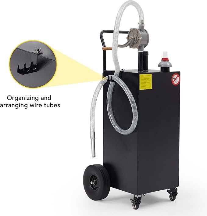 ✅Designed for portability and user-friendliness, the gas caddy comes with wheels and a hand pusher for easy mobility.