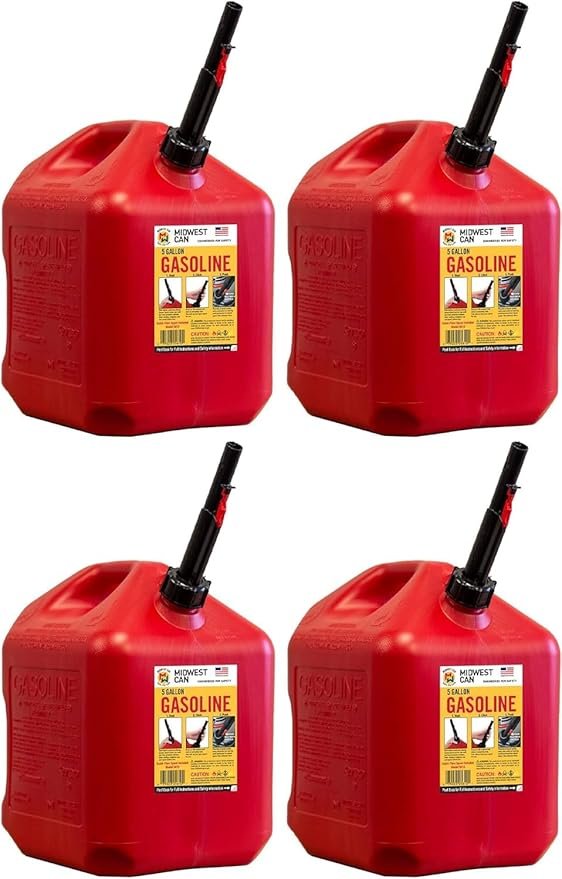 Midwest Can 5610 Safe-Flo Auto Shut Off 5 Gallon Gas Can – Durable Fuel Containers with FlameShield Safety System & Quick-Flow Spout – Red – 4 Pack