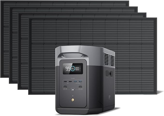 EF ECOFLOW Solar Generator DELTA 2 Max 2048Wh with 4X100W 12V Solar Panels, High Efficiency Monocrystalline PV Modules, 2400W LFP Portable Power Station, AC + Solar Fast Dual Charging For Camping RV