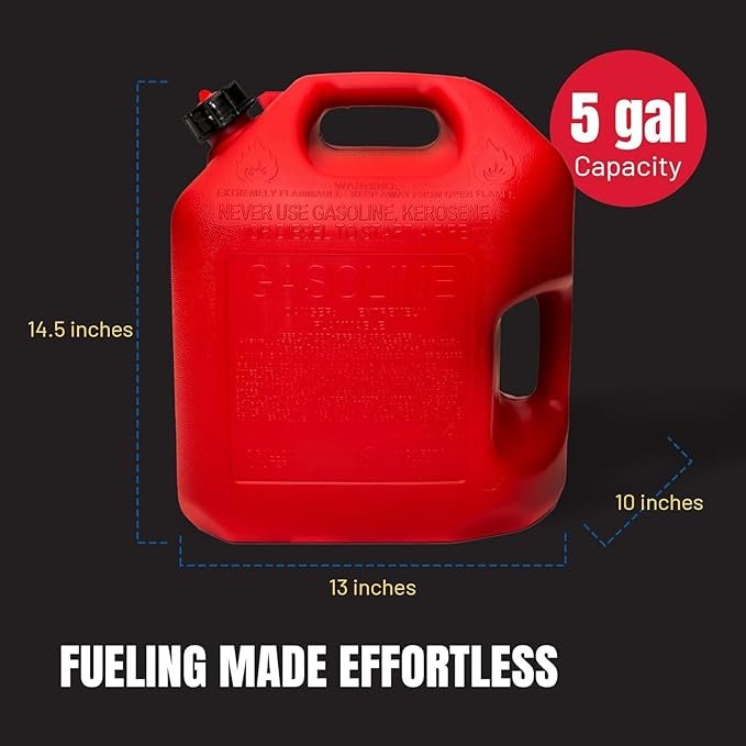 FAST & SPILL-RESISTANT: Our Quick-Flow Spout included with this fuel can delivers 2.5x faster flow with an auto shutoff to prevent overfilling or spills; the automatic closing valve ensures no leaks & provides a secure seal for fuel transfer