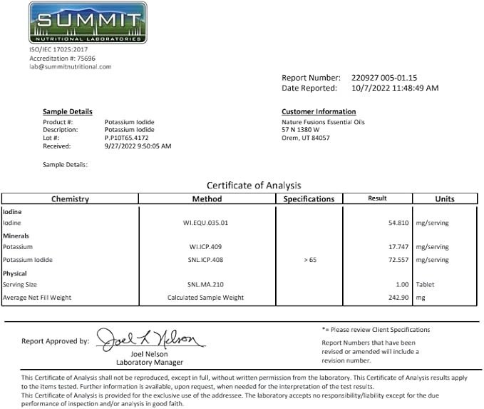 ASSURED PURITY – Our Potassium Iodine Drops, potassium iodide tablets, and potassium iodine pills utilize Potassium iodide crystals of USP grade directly sourced. We provide third-party lab tests assessing heavy metals, potency, purity, and various other factors.