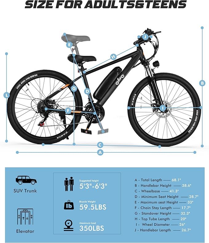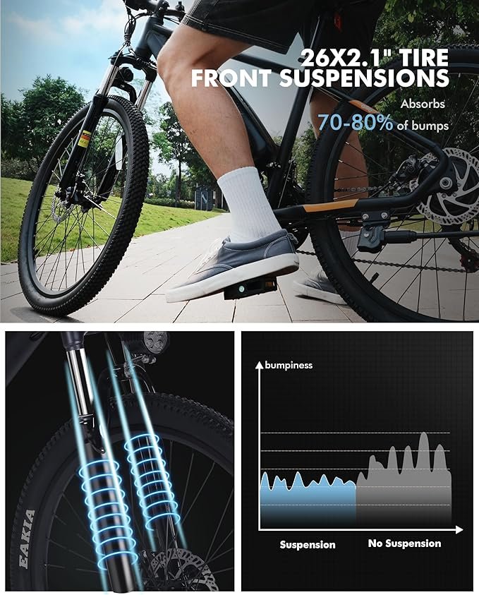 • Suprem Riding Experience – The 48.1 Pounds Racer electric bike is equipped with an LCD screen that displays key information such as speed, battery level, and assist level. Our bike also features excellent dual front suspension with key, front lights and rear Reflective Sheet for a comfortable and safe riding.